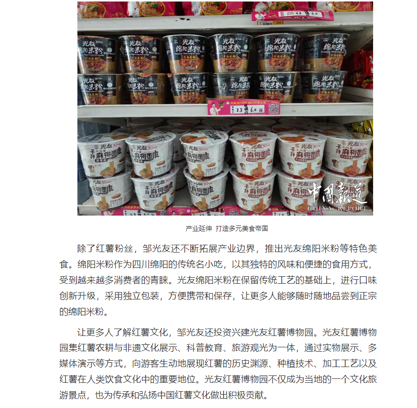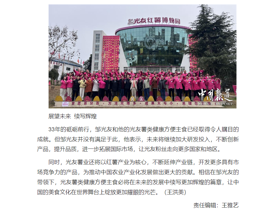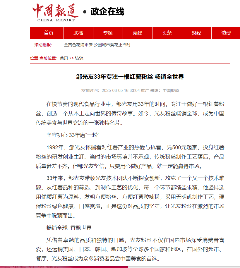 轉載中國報道網(wǎng)——鄒光友33年專注一根紅薯粉絲 暢銷全世界